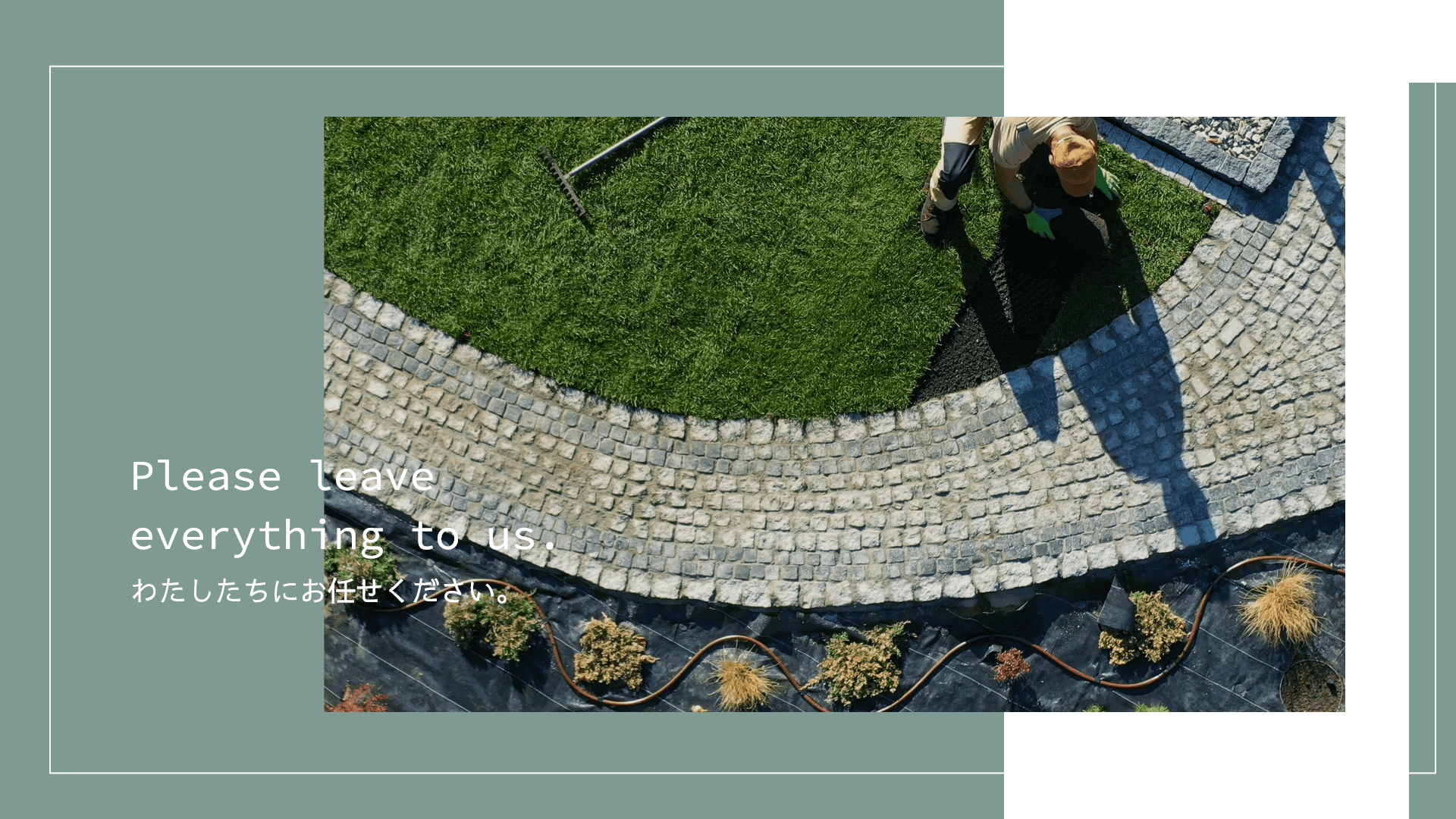 株式会社○○造園では、発注いただく方々、従事される方、すべての方から感謝していただける仕事を行うべく、最大限の努力を惜しまず業務にあたっております。